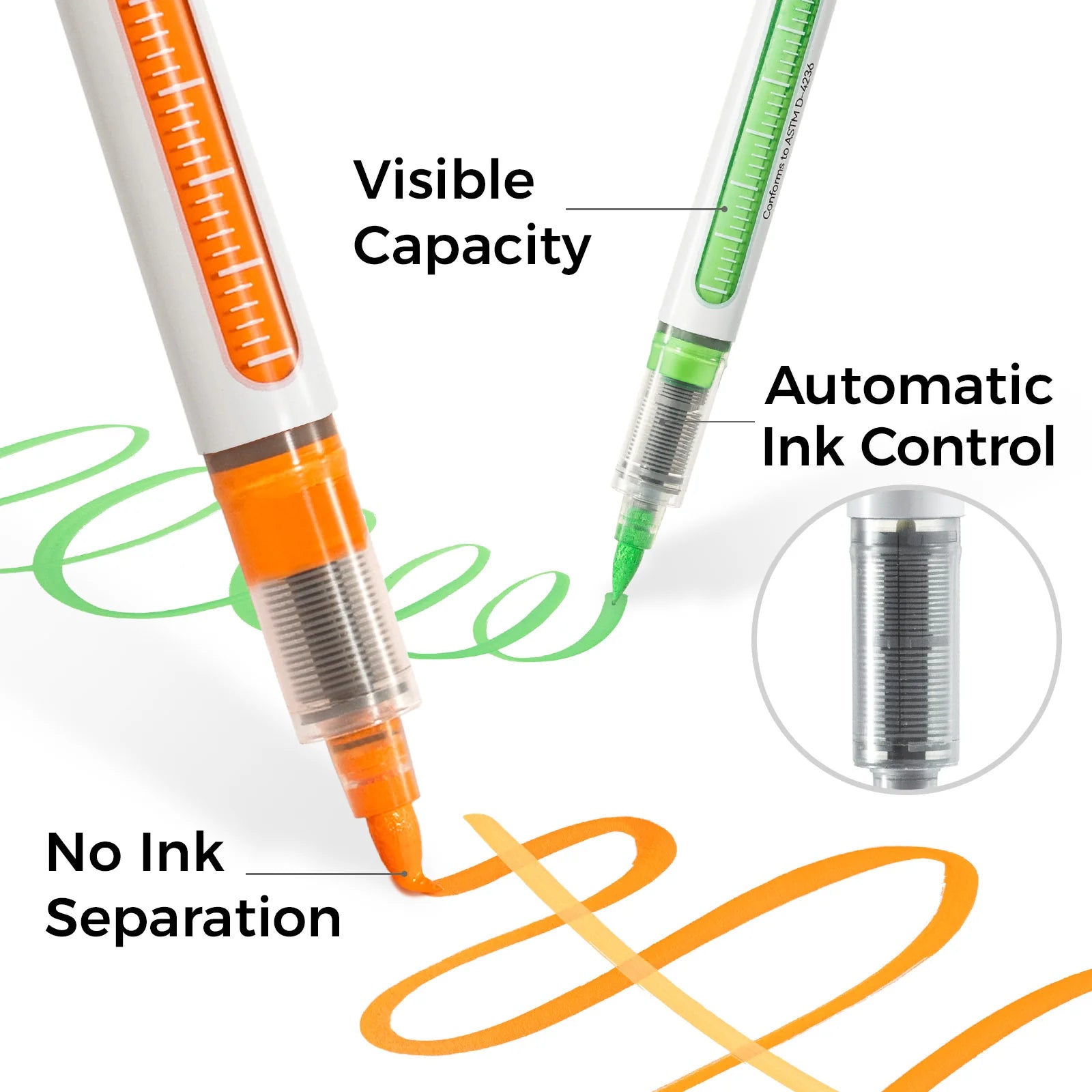 Experimenta una creatividad fluida con los rotuladores de pintura Ohuhu, diseñados con una estructura líquida directa y un regulador de tinta de precisión integrado para un flujo suave y uniforme. Con solo agitar, la tinta se distribuye uniformemente, sin el desgaste de los pasos de prensado tradicionales. La práctica ventana visual del volumen de tinta te permite seguir con precisión tu progreso.
